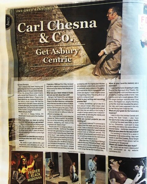 "...I actually came up with the concept for "Prayer to the Black Madonna," when I still lived in NY --just before 9/11. It's not a religious record, but like everything else we're all informed by experience. I mean, we grow up in the places we're from with the families we're born into. I wear this medal of the Black Madonna around my neck on a chain I bought in Salem, Mass. Maybe it's because I was born in Sleepy Hollow, but I find myself drawn to places rich in folklore and local history. My band in high school was called "Alfred and the Hitchcocks". Anyway, I was going through a lot of spiritual soul searching at the time and NYC is a veritable goldmine for anyone seeking wisdom. By chance, I once ran into Henry Rollins at the then new Starbucks on St. Marks and boldly handed him a test pressing of "The Psychology of Waiting". Now, you have to understand that Black Flag's first album "Damaged" was one of the first albums I ever bought, and Henry's 1st solo release "The End of Silence" was a huge inspiration to me. So yeah. If I was to say I'm at all religious it would be in the church of punk! Also around that time I read a book called, "The Black Madonna," and it really affected me, so I got this idea to write about women in religious history. I came up with the hook for "Whore of Babylon" during a waiter shift at Acme on Bond St. I still have the original lyrics scribbled on a dingy scrap of paper! A song I'd written years prior as a teenager while working at Rye Playland ended up fitting the bill for the record too. It was about the Greek Goddess Demeter and her daughter Persephone. This was way before the internet, so I had to call my friend from a payphone and ask her to drive out to a bar we passed on the school bus every morning. I knew it was named after her, but I couldn't remember --it was Demeter's Tavern and the song is "Wintertime Greys." It was strongly influenced by the new Suzanne Vega cassette that I'd bought off another kid at Playland, which is where I also learned what a "case quarter" was and made friends with a woman who lit herself on fire and high-dived into a small pool each night. She was older but flirted with me --I told her I was in a band, and she told me that she'd co-written "Round and Round" by RATT and was paid in cocaine. I think she said she was mad because they gave her drugs and no credit for the song. I can't believe I even remember that. I did a lot of gigs with my new-wave band, "900R00MZ" back then, which later transformed into a funk-metal-esque type outfit called "East of Reason". Years later I moved from NYC to Asbury Park because it reminded me of one of my frequent subway ventures out to Coney Island. But it was a very different Asbury than what you see today --downtown was all boarded up and other than The Pony and The Saint, there weren't many music venues —except Cross Roads, which was a great blues bar, but is long gone now. I played at The Saint often and some art galleries and cafes: Be Gallery, The Wonder Bar and the legendary Fast Lane..."